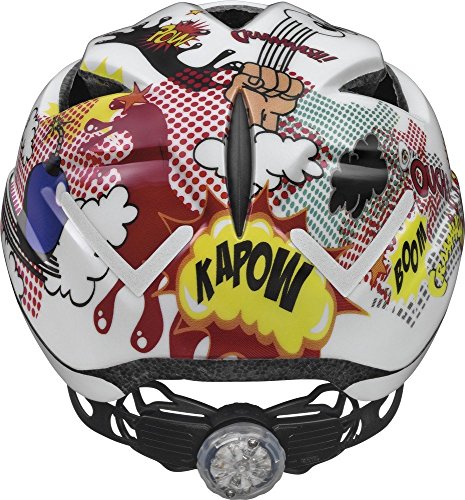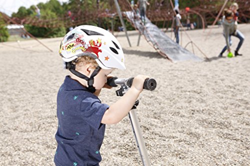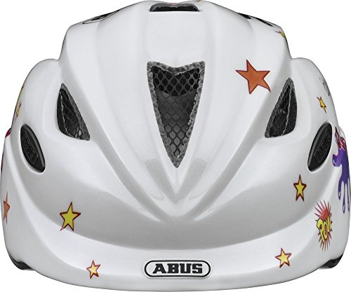 ABUS ANUKY. Helm für Kinder und Kleinkinder in Inmold-Konstruktion; aus stoßabsorbierendem Material (EPS); 3 Luftein- und 3 Luftauslässe sorgen für optimale Belüftung; Insektenschutz in den vorderen Belüftungsöffnungen; verstellbarer Steckverschluss; justierbares Zoom Evo Kid Anpassungssystem; herausnehmbare und waschbare Polster; tief heruntergezogener Schläfen- und Nackenbereich für erhöhten Rundumschutz; LED Licht im Verstellrad für zusätzliche Sicherheit während Dunkelheit und Dämmerung; Helmgrößen: S/46 – 52 cm; M/ 52 – 57 cm.