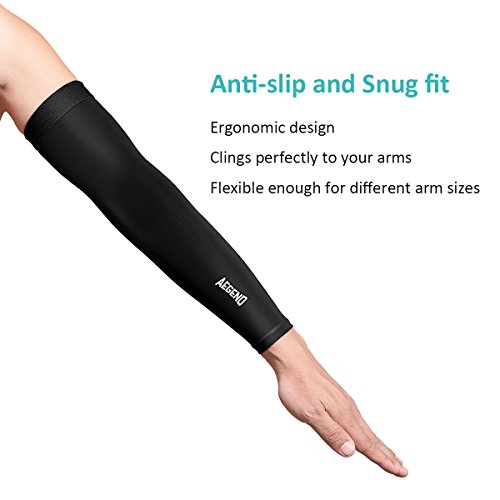 Arm Sleeves, Aegend Arm Sleeves UV Sun Protection Anti-slip for Men Women Youth Arm Warmers for Cycling Hiking Golf Basketball Driving Outdoor Sport Tattoo Cover Elbow Sleeve – 1 Pair, Black, 3 Sizes (Large)