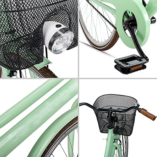 Das modische Citybike für jeden Tag Das Bergsteiger Citybike Amsterdam ist ein modisches Hollandfahrrad in feschem Design. Dank seiner zahlreichen verschiedenen knalligen Farben wird es zum wahren Hingucker in jeder Stadt. Aber auch bei der Lieferung nimmt dieses Citybike auf den stressigen Alltag in einer Stadt größte Rücksicht. So wird dieses Fahrrad fast vollständig zusammengebaut ausgeliefert, damit nur noch einige kleinere Handgriffe nötig sind, bevor Sie Ihre erste Tour starten können. Das Citybike Amsterdam ist in jeder Beziehung ideal für die Fahrt in der Stadt geeignet. Es besitzt eine Rahmenhöhe von 48 cm und einen qualitativ hochwertigen Hi-Ten Stahlrahmen. Es ist damit optimal für Körpergrößen ab 150 cm geeignet. Eine kleine Besonderheit dieses Fahrrads besteht darin, dass es sich um ein Single-Speed-Fahrrad handelt. Entsprechend können Sie in nur einem einzigen Gang bequem durch die City fahren. An der Vorderseite des Rads befindet sich eine V-Bremse und an der Rückseite des Rads wurde eine Rücktrittbremse integriert. Für eine kleine Einkaufstour befindet sich ein geräumiger Einkaufskorb direkt am Lenker, damit Sie sämtliche Einkäufe mühelos nach Hause transportieren können. Der Lenker selbst ist ein besonders bequemer City-Lenker, der speziell für eine Fahrt in der Stadt entwickelt wurde. Aber auch bei den Scheinwerfern wurde an alles gedacht. Deshalb werden diese von Batterien betrieben, sodass Sie beim Warten an einer Ampel weiterhin über Licht verfügen und in der Nacht gut zu erkennen sind. Bergsteiger – Fahrräder die bewegen.
