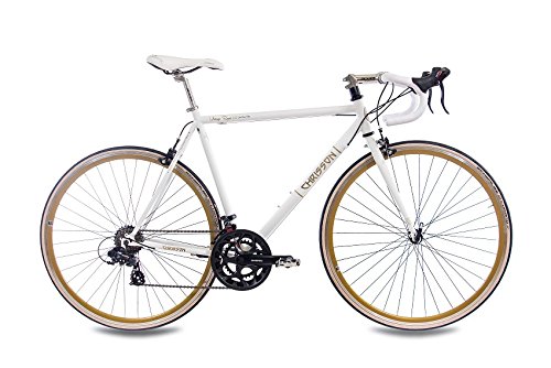 28' Zoll RENNRAD FAHRRAD CHRISSON VINTAGE ROAD 2.0 mit 14G SHIMANO A070 Retro Look weiss matt, Rahmengröße:59 cm