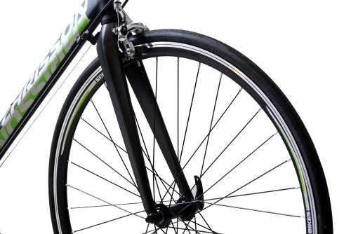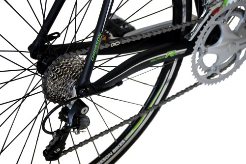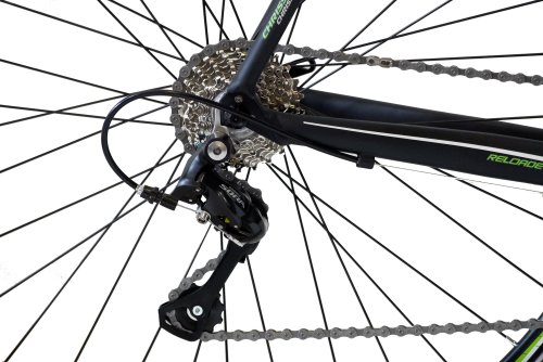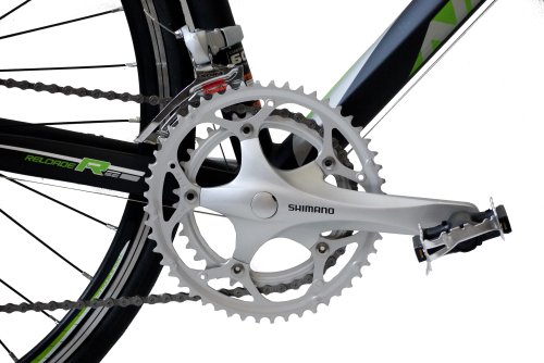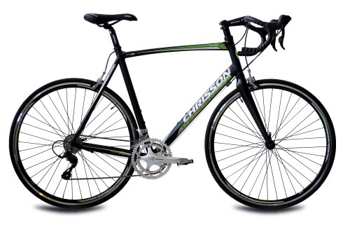 CHRISSON RELOADER ist ein Super Rennrad der Oberliga! CARBON Gabel schon bei diesem Preis dabei! Das Rennrad wird in 2 Rahmengrössen angeboten 56 und 59cm! Rahmenhöhe 56cm (1m70 bis 1m85) und Rahmenhöhe 59cm (1,8m bis 2,0m) TECHNIK: RAHMEN: TRIPLE BUTTED Aluminiumrahmen / Rahmenhöhe: 59cm GABEL : FSD 100% CARBON Renngabel STEUERSATZ: NECO H52 Ø 1 1/8' SI KETTENRAD vorne: SHIMANO SORA Hollowtech / 170mm / 50-34 Zähne TRETLAGER: SHIMANO HOLLOWTECH 2 PEDALE: FP 902 KETTE: KMC Z99 1/2 x 3/32' SCHALTWERK: SHIMANO RD SORA 3500 GSD 9 Gang SIS INDEX UMWERFER: SHIMANO FD-3500 SORA SCHALTHEBEL: SHIMANO ST 3500 sORA 9R/2L 18 Gänge Brems-Schalthebel FREILAUF: SHIMANO HG50-8 FELGEN: RODI AIRLINE 20 un 24 Speichen / ETRTO 622×13 VORDERNABE: FORMULA RB91F / SB HINTERNABE: FORMULA RB35 (/ SB SPEICHEN: SLEE 2 x 10 vorne / 2 x 12 hinten REIFEN: Schwalbe LUGANO Stripes LENKER: FOV ZOOM PRO Aluminium matt / M 400mm VORBAU: ZOOM FOV 345 PRO Aluminium AHEAD / extern: 100mm SATTEL: LIBERTY von Selle Montegrappa mit NO PRESS ZONE (made in Italy) SATTELSTÜTZE: ZOOM SP 233 Aluminium / Ø31,6mm / 300mm SATTELKLEMME: PROMAX MX-27 VORDERBREMSE: SHIMANO SORA DUAL PIVOT Seitenzugbremse HINTERBREMSE: SHIMANO SORA DUAL PIVOT Seitenzugbremse BREMSHEBEL: SHIMANO SORA