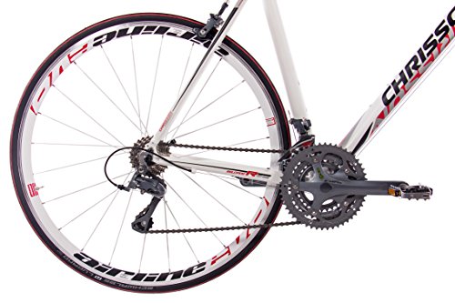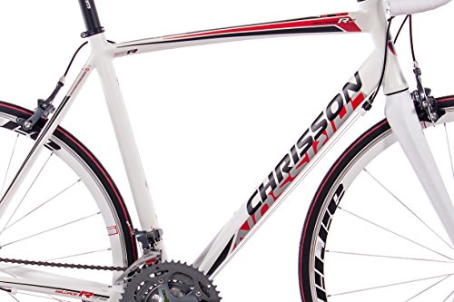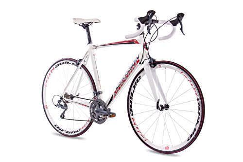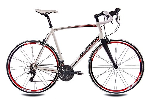 CHRISSON RELOADER ist ein Super Rennrad der oberen Mittelklasse! CARBON Gabel schon bei diesem Preis dabei! Das Rennrad wird in 2 Rahmengrössen angeboten 56 und 59cm! Rahmenhöhe 56cm (1m70 bis 1m85) und Rahmenhöhe 59cm (1,8m bis 2,0m) Design und Verarbitung einfach TOP wie bei CHRISSON gewöhnt!TECHNIK: RAHMEN: TRIPLE BUTTED Aluminiumrahmen / Rahmenhöhe: 59cmGABEL : FSD 100% CARBON Renngabel STEUERSATZ: NECO H52 Ø 1 1/8' SI KETTENRAD vorne: SHIMANO CLARIS OCTALINK / 170mm / 50-39-30 Zähne TRETLAGER: SHIMANO OCTALINKPEDALE: FP 902 KETTE: KMC Z99 1/2 x 3/32' SCHALTWERK: SHIMANO CLARIS RD 2400 8 GangUMWERFER: SHIMANO FD-2400 CLARISSCHALTHEBEL: SHIMANO ST 2401 CLARIS 3R/8L 24 Gänge Brems-Schalthebel FREILAUF: SHIMANO HG50-8 FELGEN: RODI AIRLINE 2.0 20 un 24 mit weissen Flachspeichen / ETRTO 622×13 VORDERNABE: FORMULA RB91F / SB HINTERNABE: FORMULA RB35 (/ SB SPEICHEN: SLEE 2 x 10 vorne / 2 x 12 hinten REIFEN: Schwalbe LUGANO Stripes LENKER: FOV ZOOM PRO Aluminium matt / M 400mm VORBAU: ZOOM FOV 345 PRO Aluminium AHEAD / extern: 100mm SATTEL: LIBERTY von Selle Montegrappa mit NO PRESS ZONE (made in Italy) SATTELSTÜTZE: ZOOM SP 233 Aluminium / Ø31,6mm / 300mm SATTELKLEMME: PROMAX MX-27 VORDERBREMSE: SHIMANO CLARIS DUAL PIVOT Seitenzugbremse HINTERBREMSE: SHIMANO CLARIS DUAL PIVOT Seitenzugbremse BREMSHEBEL: SHIMANO CLARIS