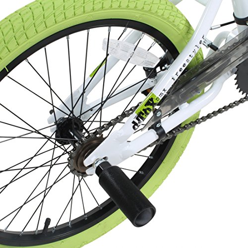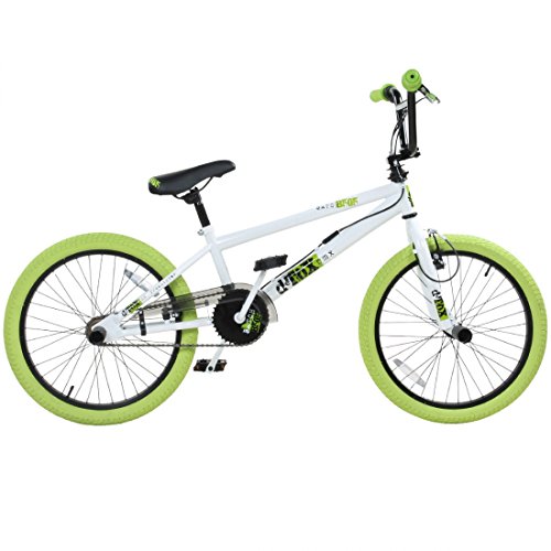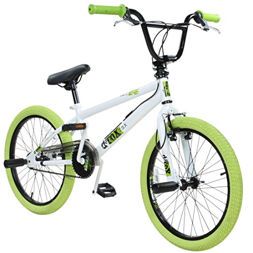 deTox BMX – Technische Daten: Hersteller: deTox Rahmen: Hi-Ten Legierungsstahl Farben: schwarz/rot, weiß/grün, blau/weiß oder grau/braun Rahmengröße: 11 Zoll (28cm) Oberrohr: 18 Zoll (46cm) Reifen: 20' x 1,95 Felgen: Aluminium 36 Loch Schaltung: singlespeed Gänge: 1 Kasette: 18 Zähne Kettenblatt: 36 Zähne Kurbelsatz: Hot Forged 170mm Hi-ten Legierungsstahl Pedale: Kunststoff Bremse: V-brake Aluminium Bremshebel: Aluminium Zwei Finger Bremshebel Griffweite einstellbar Empfohlenes Alter: 7-12 Jahre, ca. 130cm – 160cm Gabel: Hi-ten Legierungsstahl Vorbau: Aluminium Lenker: Hi-ten Legierungsstahl Breite: 625mm Bremshebel: Shimano STI Alloy Road Levers Sattel: deTOX Gewicht: 12,8 kg Besonderheiten: 360°Rotor Zubehör: Kettenschutz, Reflektoren, Klingel, 2 Stunt Pegs
