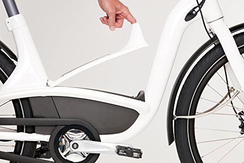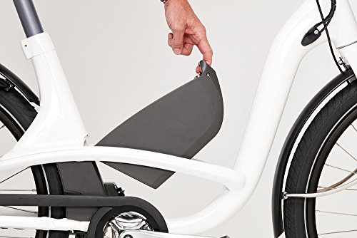 Innovative TechnologieDer Elby-Heckantrieb ist das Herzstück des E-Bikes und bringt dich in Bewegung: Je stärker du trittst, desto mehr Unterstützung erhältst du vom Motor – in vier Stufen liefert er bis zu 200 % zusätzliche Power. Der leistungsstarke BionX D-Series Motor sorgt für mächtig Antrieb sowie ein dynamisches und dennoch harmonisches Fahrvergnügen. Er ist geräuschlos und vibrationsfrei. Ein besonderer Clou: die innovative Technologie unterstützt nicht nur dich und deine Fahrt – auch du kannst dein Pedelec unterstützten, denn der Motor dient zusätzlich als Generator; durch Bremsen oder Bergabfahren wird im Rekuperationsmodus der Akku aufgeladen. Teamwork vom Feinsten! Höchster KomfortElby ist dein vielseitiger Begleiter. Intuitiv in der Handhabung, herausragend im Komfort: Ob in der Stadt oder auf dem Land – der dynamische Antrieb bietet dir eine leistungsstarke Unterstützung und jede Menge Fahrspaß auf deinem E-Bike. Die großvolumigen Reifen passen sich flexibel jedem Untergrund und Fahrstil an und vermitteln ein unglaublich ruhiges und angenehmes Fahrerlebnis. Der bequeme Gelsattel sorgt für die optimale Verteilung deines Gewichts und die extrabreiten, ergonomisch geformten Griffe liegen sicher in der Hand. Einfach und komfortabel. Ein Rad für alleElby ist anders – auch im Design. Mit seinem reduzierten Look ist Elby die moderne Interpretation des klassischen Tiefeinsteigers und ein absoluter Eyecatcher unter den Pedelecs. Elby ist auch super flexibel und passt sich im Handumdrehen an dich an – „One-Size-Fits-Most“ ist unser Motto. Der leichte und stabile Aluminiumrahmen macht nahezu alles mit und hat eine optimierte Größe für Fahrerinnen und Fahrer zwischen 150 und 195 cm Körpergröße. Lenker und Sattel lassen sich blitzschnell neu einstellen. So kannst du dein Elby E-Bike ohne großen Aufwand mit anderen teilen. Praktischer geht’s nicht. Herausnehmbarer AkkuElby ist gu