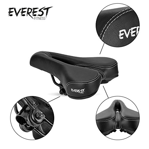 EVEREST FITNESS Komfort Trekking-Fahrradsattel für Herren aus weichem Synthetik-Leder mit 2 Jahren Zufriedenheitsgarantie – Fahrrad-Sitz / Fahrrad-Sattel / MTB Sattel / Mountainbike-Sattel /Elastomere-Dämpfung