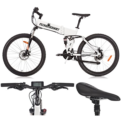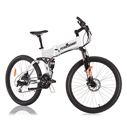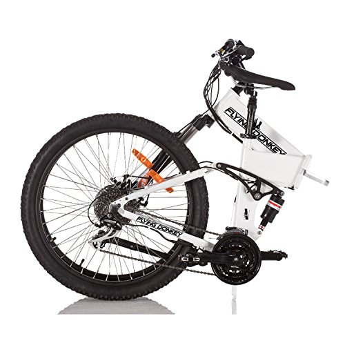 Elektrisches Mountainbike Pedelec von Fly-High Bikes mit top Features & Details inkl. mobilem Klappsystem! Ein Full-Suspension Elektrofahrrad mit Fully Ausstattung und für eine Elektro e-Bike mit dieser Ausstattung extrem leichtgewichtig mit nur gut 20kg. Abmessungen: ca. 185 x 64 x 104 cm und zusammengeklappt ca. 108 x 38,5 x 104 cm.
