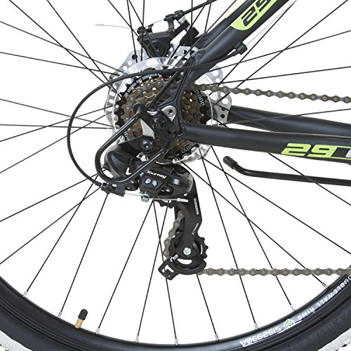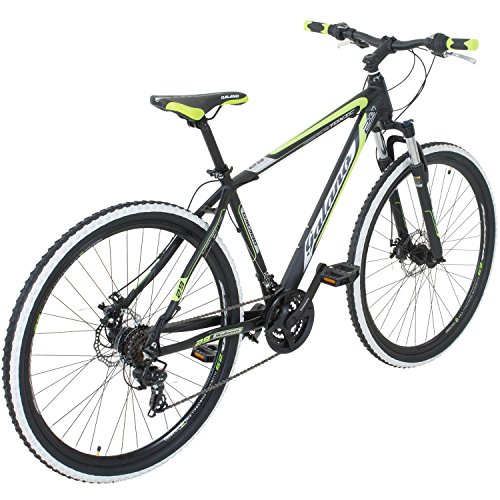 Technische Daten: Hersteller: Galano Modell: 29 Zoll TOXIC / PULSE Farbvarianten: Schwarz/Grün, Orange, Schwarz/Orange, Weiß/Rot Rahmen: Aluminium Hydroformed MTB Rahmen Rahmengröße: 48 cm 19 Zoll Gabel: Federgabel, mit mechanischem Lockout Reifen: 29 X 2.10 MTB Reifen mit weißen Streifen Felgen: 29 Aluminium Doppelwandfelgen mit 32 Löchern Schaltung: Shimano Tourney Gänge: 21 Schalthebel: Shimano Revoshift Drehgriffschalter Umwerfer: Shimano Kette: KMC Bremsen: CSTAR mechanische Scheibenbremsen BX-350 Bremshebel: Aluminium 3 Finger Typ Vorbau: Aluminium Ahead NECO Steuersatz: NECO Lenker: Aluminium Hi-rise MTB-153AL 600mm Gewicht: 16,9 kg Lieferzustand: 85% vormontiert. Lenker, Vorderrad, Pedale und Sattel sind zu montieren