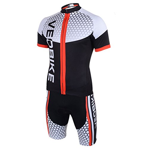 GWELL Herren Radtrikot Set Fahrradbekleidung Fahrrad Trikot Kurzarm + Radhose mit 3D Sitzpolster schwarz weiß XL