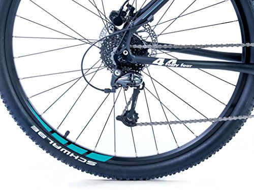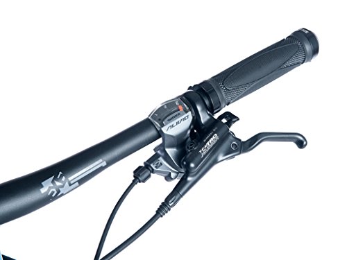 Das perfekte Mountainbike für den Offroad-Einsteiger – jetzt in topaktueller 27.5″-Ausführung. Das neue HAWK Fortyfour 27.5 ist ein Bike mit Top-Performance und allem was man für den ungetrübten Geländespaß braucht. So bieten eine hochwertige RST Federgabel mit 100 mm Federweg und Lockout-Funktion, hydraulische Scheibenbremsen von Tektro und eine Shimano Deore Schaltung mit 27 Gängen stets Kontrolle und Sicherheit im unwegsamen Gelände. Technische Informationen Biketyp: MTB Hardtail Radgröße: 27,5 Zoll Rahmengröße:S, M, L Farbe: Schwarz Rahmenmaterial: Alu 6061-T6 Gabel: RST Blaze 100 mm Lockout Dämpfer: Ohne Schalthebel: Shimano Altus 3 x 9 Schaltwerk: Shimano Deore 9-fach Umwerfer: Shimano Altus 3-fach Kurbel: Shimano FC-M371 22-32-44 Z Kasette: Shimano CS-HG200 9-fach Kette: KMC Z99 Steuersatz: Ahead 1-1/8 Zoll semiintegriert Vorbau: MTB Alu Schwarz 90/105 mm 7 Grad Lenker: MTB 31,8 Schwarz 700 mm Griffe: MTB Kraton Rubber Naben: Formula Alu Schnellspanner Felgen: Remerx Dragon 719 DB Disc Reifen: Schwalbe Rapid Rob 27,5 x 2,1 Pedale: MTB VP Schwarz Bremsen: Tektro MD-M290 hydraulische Scheibenbremse Bremsscheiben v/h: 180/160 mm Sattel: MTB DDK Rail Design Sattelstütze: 31,6 mm Alu Schwarz