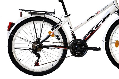 RAHMEN: GW Stahlrahmen HI-TEN Rahmenhöhe: 36 cm GABEL: GW HF Stahlgabel STEUERSATZ: NECO-843 1 1/8 Lenkersteuersatz Ø 1 1/8″ KETTENRAD, vorne: PROWHEEL MA – P 503 24/34/42Zähne, Stahlkurbel, 170mm, schwarz KETTE: KMC Z 30 PEDALE: FEIMIN FP836 Mit Lichtreflektoren SCHALTWERK, hinten: SHIMANO RD TZ-50B 6 Schaltgänge SIS INDEX Shifting SCHALTWERK, vorne: SHIMANO TZ-20 DS6 Top Route SCHALTHEBEL: SHIMANO RS 35 L/R6 18 Gängen Drehgriffschalter / Revo Shift LEERLAUF: SHIMANO MF-TZ20 Mehrfacher Leerlauf in allen 6 Gängen FELGEN: SPEED Doppelwandig, AlufelgenSPEICHEN: SLEE 36 Speichen 14G W/CP mit 16mm Speichennippel REIFEN: KENDA 24″ x 1,75, Schwarz LENKER: GW 201 Stahl, Breite: 580mm GRIFFE: HERMANS 89 A 90mm VORBAU: GW-103 Stahl, 60mm, extern SATTEL: MONTEGRAPPA LIBERTY weiss mit Stickereien, Durchluftung und Seitenwänden SATTELSTÜTZE: GW Stahl, Länge: 250mm, Ø 25,4mm SATTELKLEMME: ZOOM AT-88 Alukörper VORDERBREMSE: SACCON FV 941251 V-Bremse mit Sprungfeder Länge: 110mm, schwarz HINTERBREMSE: SACCON FV 941252 V-Bremse mit Sprungfeder Länge: 110mm, schwarz BREMSHEBEL: SACCON L70P5L3P04 Aluminium- Kunststoffausführung 2,5 Finger ZUBEHÖR: Seitenstütze/Ständer aus Stahl, Beleuchtungsset AN LUN, Gepäckträger, Pumpe Verpackung: Fabrikneu und Originalverpackt. Um eventuelle Transportschaden zu vermeiden, sind die Fahrräder nicht zu 100%, sondern zu 85% vormontiert! Sie müssen nur noch Lenker, Pedale , Räder und Sattel montieren und evt. leicht nachjustieren.