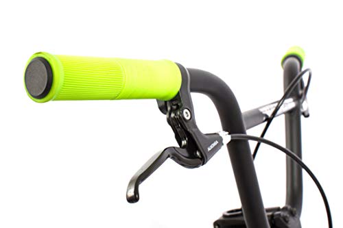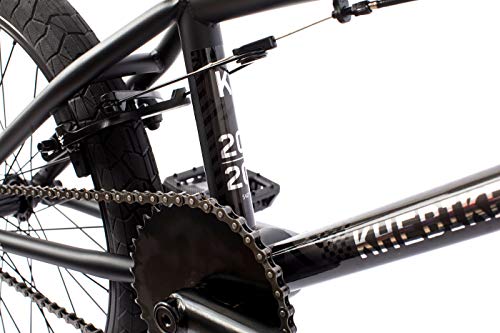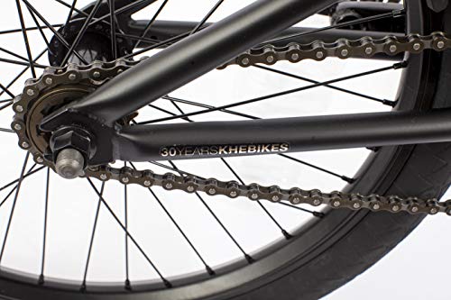 – Rahmen: HiTen Stahl, Oberrohrlänge: 495mm (19,5″) – Gabel: aus hochfestem HiTen – Lenker: HiTen 2-teilig – Vorbau: Leadtec Front Loader Style – Steuersatz: Headset 1 1/8“ – Hinterradbremse: Flybikes Springhanger U-Brake! – Vorderradbremse: Sidepull (schon montiert!) – Bremshebel: für U-Brake – Bremskabel: extra lang für Lenkerdrehungen – Kurbel: sehr stabile 3 teilige CrMo Hohl-Kurbel 170mm – Tretlager: American-BB – Kette: KMC – Pedale: sehr flache & leichten PVC 9/16“ Pedale – Kettenblatt: 36 Zähne – Vorderrad: Aluminium Felge, 36 Loch Prism Nabe 10mm – Hinterrad: Aluminium Felge, 16 Zähne Ritzel, 14mm Achse, 36 Loch Prism Nabe – Felgen: „KHE BIG400“ extra Breite & sehr stabile 35mm Aluminium Felgen – Sattel: einstellbar – Sattelklemme: integriert – Reifen: breite KHE 2,0“ – Extra: Vorderbremse/Hebel/Kabel sind schon montiert und eingestellt! – Fahrrad ist zu 85% vormontiert – Gewicht: nur ca.11,3 kg Das Wichtigste für ein gutes BMX ist die perfekte Rahmengeometrie. Außerdem sollte es leicht aber dennoch stabil sein.Genau nach diesen Vorgaben werden unsere KHE BMX Fahrräder entwickelt und gebaut. Top Qualität zu unschlagbaren Preisen! KHEbikes von Fahrern für Fahrer seit 1988