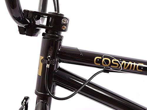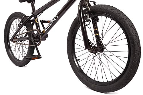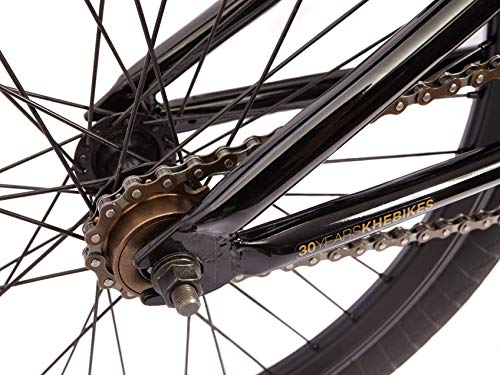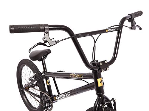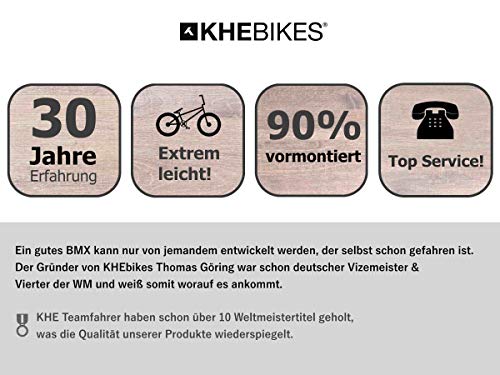 Das optimale Einsteiger BMX für Fahrer zwischen 8-15 Jahren und 140cm Größe! – Rahmen: HiTen, Oberrohrlänge: 495mm (19,5″), HT 75*, RC347mm- Gabel: aus hochfestem HiTen Stahl- Lenker: 2-teilig 8“ hoch, 660mm breit- Vorbau: Front Loader Style (Lenker wird von vorne geklemmt)- Steuersatz: Headset 1 1/8“- Rotor: patentiertes AFFIX Pro Rotor System!- Bremsen: POWER V-Brakes vorne & hinten!- Bremshebel: für V-Brake- Griffe: VELO 120mm lang „Mushroom Style“- Kurbel: Geschmiedete einteilige Kurbel 165mm- Kettenblatt: 32 Zähne- Tretlager: American loose ball- Kette: KMC, Markenprodukt von hoher Qualität- Vorderrad: TDI Alu Felge, 10mm Achse, 36 Loch Prism Nabe- Hinterrad: TDI Alu Felge, 14 Z. Ritzel, 10mm Achse, 36 Loch Prism Nabe- Sattel: gepolstert & im Winkel/Neigung verstellbar- Sattelstange: 300mm lang- Sattelklemme: integriert- Reifen : Fette PRISM 2,00“ Reifen- Farbe: schwarz- Gewicht: nur ca. 11,1kg Warum ein BMX Fahrrad von KHE? – KHEbikes wurde 1988 in Karlsruhe gegründet d.h. 30 Jahre Erfahrung – KHE Teamfahrer haben 10 Weltmeistertitel in allen PRO Kategorien gewonnen – Viele wichtige BMX Innovationen und Patente sind aus dem Hause KHE – Inhaber Thomas Göring der seit 1980 BMX fährt, war schon deutscher Vizemeister und Vierter der WM – Top Qualität zu unschlagbaren Preisen! KHEbikes von Fahrern für Fahrer seit 1988