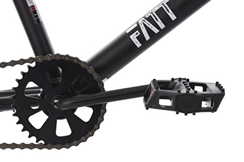 Schwarzmalerei ausnahmsweise erlaubt: Das 20″ BMX „FATT“ von KS Cycling kombiniert seinen komplett schwarzen Rahmen mit ausschließlich schwarzen Anbauteilen. Cooler geht's nicht! Das monochrome Bike zum Tiefstpreis überzeugt aber auch durch seine technische Ausstattung: Selbstverständlich ist das Fahrrad mit einem 360°-Rotor ausgestattet, der es erlaubt, den Lenker komplett zu drehen. Für Tricks & Co. werden vier Stahlpegs mitgeliefert – natürlich in Schwarz! Gebremst wird mit V-Brakes vorne und hinten.Rahmen: Hi-Ten Freestyle-StahlrahmenFarbe: SchwarzGabel: BMX-Freestyle-GabelSteuersatz: 1″ SteuersatzVorbau: 1″ Aluminium-SchaftvorbauLenker: 2-teiliger StahllenkerRotor: 360°-RotorsystemGriffe: BMX-Griffe mit FlanschNaben: Integrierte Stahlnaben, 10-mm-AchsenFelgen: Aluminiumfelgen, 36°Reifen: KENDA Kikzumbut Freestyle-Reifen 20″ x 1,95″ (50-406)Kettenblatt: Stahlkettenblatt 32 ZähneKurbel: 1-teilige StahlkurbelInnenlager: KugellagerPedale: Kunststoff-Plattformpedale 1/2″Sattel: BMX-Freestyle-SattelSattelstütze: Stahl-Kerzenstütze Ø 25,4 mmSattelklemmung: Klemmring mit SchraubeBremse: V-Brakes vorn und hintenBremshebel: KompositZubehör: Kettenschutz, 4 StahlpegsGewicht: ca. 14 kg
