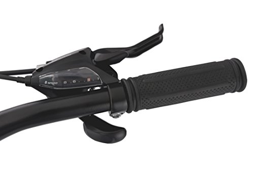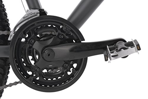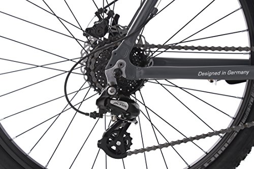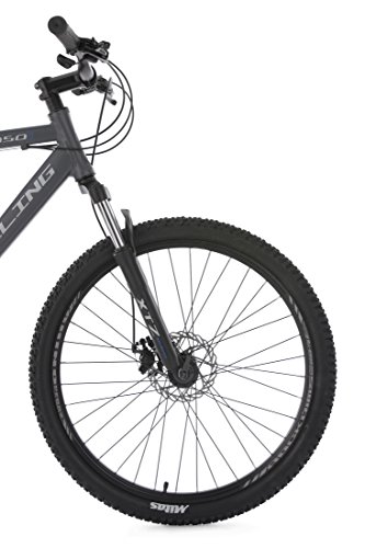 Kraftvoll und elegant: Das leichte 26″ Aluminium-Hardtail-MTB „GTZ“ von KS Cycling in edlem Anthrazit ist kein gewöhnliches Mountainbike. Mit seinem sportlichen Design und den einzigartig geformten Rahmenrohren ist das Fahrrad ein absoluter Blickfang!Scheibenbremsen ermöglichen sichere Verzögerung in allen Situationen und die Federgabel sorgt für ausreichend Komfort. Außerdem ist das Bike mit einer 24-Gang-Schaltung von SHIMANO ausgestattet.» Aluminium-Rahmen Hydroformed» Federgabel» JAK Scheibenbremsen vorne und hinten» SHIMANO 24-Gang-Kettenschaltung» ROCK RIMS Hohlkammerfelgen» Ahead-Vorbau und Oversized-Lenker» FlaschenhalterRahmen: Aluminium-Hardtail-Rahmen HydroformedRahmenhöhe: 56 cmFarbe: AnthrazitGabel: Federgabel mit 1 1/8″ Ahead-SchaftSteuersatz: Ahead-Steuersatz 1 1/8″Vorbau: Aluminium-Ahead-Vorbau (Lenkerklemmung 31,8 mm)Lenker: Aluminium-MTB-Lenker Oversized (Klemmdurchmesser 31,8 mm)Naben: Aluminium-Schnellspannabe vorne und hintenFelgen: ROCK RIMS Aluminium-Hohlkammerfelgen mit VerschleißindikatorReifen: MITAS Stollenreifen 26″ x 2,10″ (54-559)Gänge: 24-Gang-KettenschaltungSchaltwerk: SHIMANO AltusUmwerfer: SHIMANO TourneySchalthebel: SHIMANO Schalt-/Bremshebelkombination ST-EF 51Ritzel: SHIMANO CS-HG31 8-Gang-Kassette (32-11 Zähne)Kurbel: Aluminiumkurbeln (Kettenblätter 42-34-24 Zähne)Innenlager: BSA-PatronenlagerPedale: mit AluminiumkäfigSattel: VADER MTB-SattelSattelstütze: Aluminium-Patentsattelstütze Ø 27,2 mmSattelklemmung: Klemmring mit SchnellspannerBremse: J.A.K. mechanische Scheibenbremsen (mit Wave-Bremsscheibe Ø 160 mm)Bremshebel: SHIMANO Schalt-/Bremshebelkombination ST-EF 51Zubehör: FlaschenhalterGewicht: ca. 14,5 kg