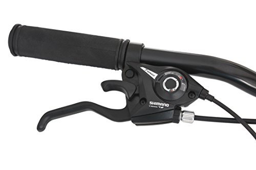 Das leichte Aluminium-Bike ist mit einer 21-Gang-Kettenschaltung von SHIMANO ausgestattet. Mechanische Scheibenbremsen garantieren die sichere Verzögerung.