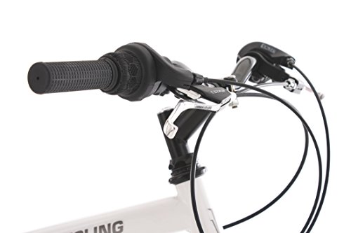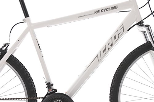 Ein echtes Allround-Talent für jeden Tag: Das ICROS ist ein absolut solides Hardtail-MTB mit einem eleganten Design zum Knallerpreis. Das weiße Bike ist mit eleganten Decals verziert und macht eine gute Figur.Mit dem ICROS kommen Sie jederzeit zuverlässig und mit Fahrspaß ans Ziel. Ausgestattet ist das Rad mit einer 21-Gang-Kettenschaltung mit Drehschaltgriff, V-Brakes und anatomisch geformtem Sattel. Steigen Sie auf und spüren Sie den Fahrtwind!Rahmen: Hi-Ten StahlrahmenRahmenhöhe: 51 cmGabel: Federgabel mit 1 1/8″ GewindeschaftSteuersatz: 1 1/8″ GewindesteuersatzVorbau: 1 1/8″ Stahl-Schaftvorbau Lenker: StahllenkerNaben: VollachsnabenReifen: MTB-Stollenreifen 26″ x 2,00″ (52-559)Felgen: ROCK RIMS Aluminiumfelgen mit VerschleißindikatorSchaltungstyp: SHIMANO 21-Gang-Kettenschaltung Schaltwerk: SHIMANO Tourney Umwerfer: POWER 3-fachSchalthebel: POWER Friction DrehschaltgriffeRitzel: 7-fach-Schraubkranz (28-12 Zähne)Kurbel: Stahlkurbel mit 3 Kettenblättern und Hosenring (42-34-24 Zähne)Innenlager: BSA 68 PatronenlagerPedale: Kunststoffpedal 9/16″Sattel: MTB-Sattel Sattelstütze: Stahl-Kerzenstütze Ø 25,4 mmSattelklemmung: KlemmschraubeBremse: Aluminium-V-BrakesBremshebel: KompositZubehör: KlingelGewicht: ca. 15,2 kg