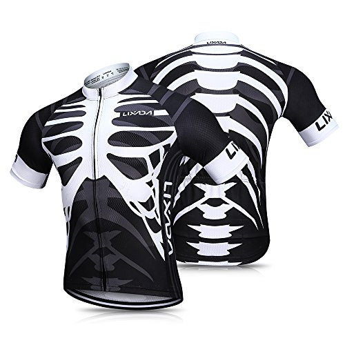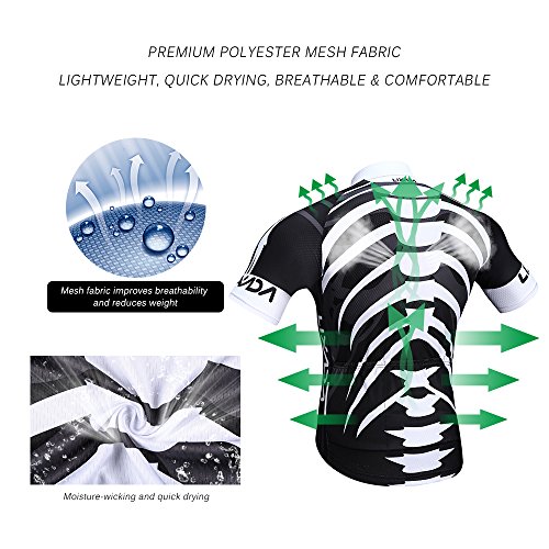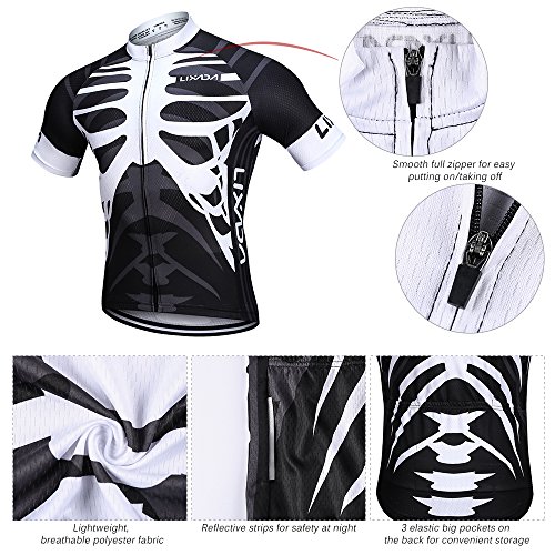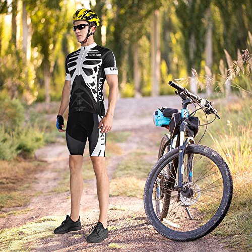 Lixada Herren Radtrikot Set, Atmungsaktiv Quick-Dry Kurzarm Radsport-Shirt + Gel Gepolsterte Shorts, (Schwarz&Weiß, L)