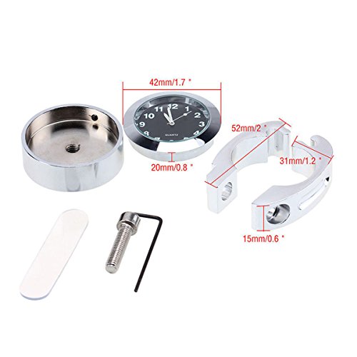 Anleitung: 1. Hex-Taste abziehen, Uhr aus dem Gehäuse entfernen und die Zeit direkt einstellen. 2. Setzen Sie die Uhr zurück und verriegeln Sie sie mit der Sechskantschlüssel fest. 3. Für 1 „“ Lenker, montieren Sie die Uhr ohne die Gummi-Pad auf dem Lenker direkt. 4. Für 7/8 „“ Lenker, montiere die Uhr mit dem Gummikissen am Lenker direkt. 5. Verriegelte die Schrauben, die es fest machen und gut auf den Lenker passen. Anpassung: Helle Hände und weißer Sweeping Sekundenzeiger sind leicht zu lesen. Robustes, glänzendes Metallgehäuse ist O-Ring versiegelt, so dass es wasserdicht / staubdicht ist. Universal fit am meisten Motorrad, Street Bike / Standard Fahrrad / Sport Fahrrad / Dirt Bike / nacktes Fahrrad mit 7/8 „“ oder 1 „“ Lenker wie Yamaha, Kawasaki, Honda, Suzuki, Harley Davidson, etc. * Hinweis: * Bitte lesen Sie alle Beschreibung & Montage vor der Bestellung des Produkts. Ihre Zufriedenheit ist unsere größte Sorge. Treten Sie mit uns bitte in Verbindung, um jedes mögliches Problem zu lösen, bevor Sie irgendein Null- oder negatives Rückgespräch lassen. Danke.
