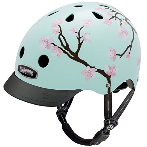 Nutcase CHERRY BLOSSOMS. Fahrradhelm im Kirschblüten-Design; stabile ABS-Hartschale mit InMold-Technologie; EPS-Schaum auf der Innenseite; optimale Luftzirkulation durch Luftkanäle in der EPS-Schale; abnehmbares und reflektierendes Drehradverstellsystem; weicher Textil-Kinnriemen; Magnetverschluss; abnehmbares Visier; Reflektoren; Größe: S (52-56 cm), Größe M (56-60 cm).