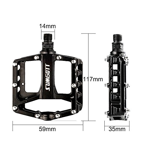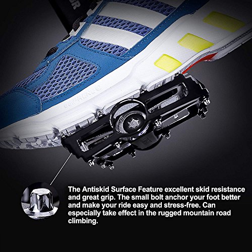 Hochqualitative MTB-Pedale mit 100% Kundenzufriedenheit Warum brauchen Sie gerade diese Pedale für Ihr MTB? Fahrradfahren stellt heutzutage eine sehr gesunde und beliebte Sportart dar. Sie haben beim Fahrradfahren aber bestimmt schon mal erlebt, dass Ihre Füße während der Fahrt die Pedale nicht festhalten können. Insbesondere wenn Sie beschleunigen wollen, wie häufig sind Sie schon mal von den Pedalen verhindert? Diese Pedale für Ihr MTB sind dann genau richtig für Sie! Wir bieten Ihnen hochqualitative Produkte und zugleich einen einzigartigen Service an. Wenn Sie Fragen haben, können Sie sich bei uns jederzeit melden.Highlights: Farbe: Schwarz Material: ABS Alu-Legierung Gewicht: ca. 450 Gram Durchmesser vom Gewindebolzen(9/16) Größe: ca. 12.2(cm)×10.2(cm)×2.3(cm) Verpackung: in Karton 2 *CNC Pedale aus Alu-Legierung für MTB