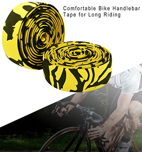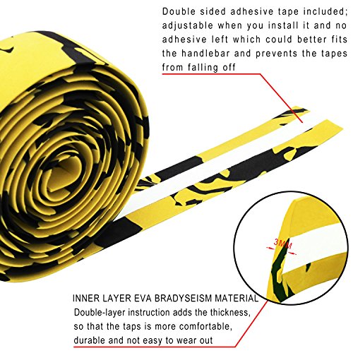 EIGENSCHAFTEN: Camouflage Series Fahrrad Lenkerband; Hauptfarbe: Schwarz, Blau, Silber Ton; Bar Plug Durchmesser: 0,7 “ Bandgröße: 82,6 & quot; x 1,1 & quot; (L * W) Gesamtgewicht: 48g Packungsinhalt: 2 x Fahrrad Lenkerband, 2 x Bar End Plug, 1 x Viskose Gesamtlänge von jedem: 200 cm < br> Breite: 2,8 cm