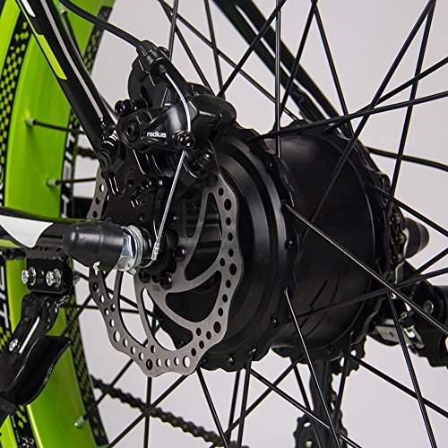 Fahrradmodell: TOP-012 1000 W E-Fat Bike. Farbe: Schwarz-Grün, Weiß-Blau, Schwarz-Gelb. Marke: TOP-012 Electric Fat Bike 48 V x 17Ah. Größe: 26 Zoll. Geschwindigkeit: ca. 35-38 km/h. – Nettogewicht: 29 kg. Bruttogewicht: 34 kg. Maximale Belastung: 200 kg. Monitor: 48 V Motor Fat Bike. Licht: LED-Scheinwerfer. Ladegerät: EU Standard-Gleichstrom 2,1 Ladegerät. Akku: 48V x 17A flaschenförmiger Lithium-Akku (mit BMZ-Zelle aus Deutschland). Elektromotor: Leistungsstarker Motor 48 V x 1000 W Spezialmotor für Fat Bike. Gabel: Supergroße Crown Lockout Federgabel aus Legierung. Headset: Wasserfestes versiegeltes Headset. Head-Bar: ANO bunt 31,8 mm Aluminium-Head-Bar. Vorbau: Aluminium Gold-ANO, bunter Vorbau. Sattel: Ergonomisch designter Fat Bike-Sattel. Sattelstütze: Aluminium mattschwarz, Sattelstütze mit 30,4 mm. Schalthebel: Shimano TX50, 21-Gang-Schaltung. Mittlere Kettenschaltung: Shimano M410E. Hintere Kettenschaltung: Shimano TX35. Pedal: Pedal mit Aluminiumlegierung. Schaltgetriebe: Spezieller Schaltgetriebehebel mit Lithium-Akku der Fünf-Sterne-Spitzenklasse. Bremse: Spezieller elektrischer Hebel mit Lithium-Akku der Fünf-Sterne-Spitzenklasse. Bremssystem: TW Hochfunktions-Vorder-Hinterrad-Scheibenbremse. Kurbelgarnitur: 3-teilig, 24 x 34 x 42T, mit Aluminiumlegierung speziell für Fat Bike. Tretlager: Eingebautes TW, BB wasserdicht. Kassette: Shimano 7-Gang-Kassette. Reifen: TW-JD-Funktion, Thermo-Stabilität, bunte Reifen. Vorderradnabe: TW MTB-Nabe mit Aluminiumlegierung. Speichen: Schwarze Speichen, vorne-14 g, hinten 13 g.