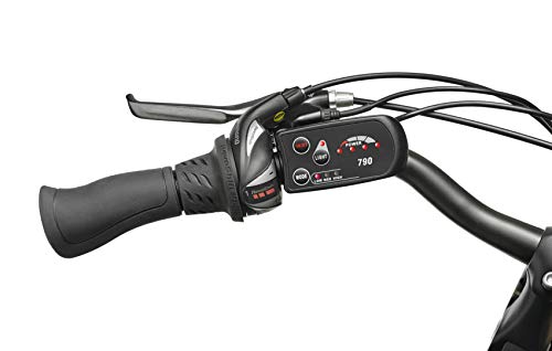 Komfortables und leichtes E-BikeDas Pedelec Citybike mit Elektroantrieb ist für alle geeignet, die sich bequeme Mobilität im Alltag in Form eines Elektro-Fahrrads wünschen. Das E-Bike in Anthrazit (matt) kommt in der komfortablen, Damen-typischen Form mit tiefem Einstieg. Der Aluminium-Rahmen sorgt für ein niedriges Gewicht (24 kg), sodass bei Bedarf auch das Tragen (z.B. im Treppenhaus) gut möglich ist. Ein Gepäckträger und der bequeme Selle Royal Sattel sorgen für zusätzliche Flexibilität und Komfort. Zum schnellen Start wird das Ebike zu 98% vormontiert geliefert.Technik die begeistertDas E-Bike mit Hinterrad-Nabenmotor erreicht eine Geschwindigkeit von 25 km/h. Der im Gepäckträger verbaute Akku mit moderner Lithium-Ionen-Technologie (Li-Ion) ist langlebig, ausdauernd und kann schnell geladen werden – nachdem er, je nach Intensität, bis zu 80 Kilometer Unterstützung geben kann. Begleitet wird diese Technik von modernster LED-Beleuchtung.