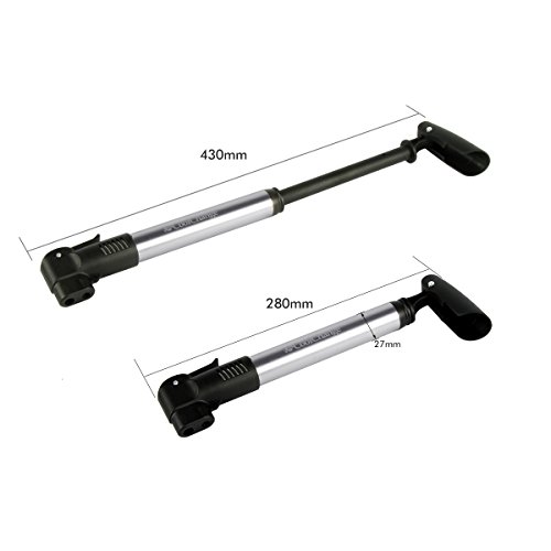 Features: ♥Keine Notwendigkeit, den Gas-Ventil zu übertragen, können Sie die amerikanische oder Französisch Ventil zur gleichen Zeit nutzen. ♥Einfach zu bedienen, sehr praktisch: die beiden separaten ventile, man braucht nicht umbauen für presta- und autoventile ♥Einfach zu tragen, eine sehr tragbare Luftpumpe für Outdoor Sports. ♥Klappbar-Griff, handlich und bequem zu pumpen. ♥Personal-Design, Nylon-Komposite, wird die Stange nicht abgebrochen. Technische Daten: ♥Material: Aluminium-Legierung und technischen Kunststoffen Shell ♥Druck: 130psi ♥Gewicht: 170g ♥Länge: 280 mm ( min ), 430 mm ( max ) , 27mm ( Durchmesser ) Lieferumfang: 1 * Fahrradpumpe 1 * Pumpenhalte 2 * Schrauben