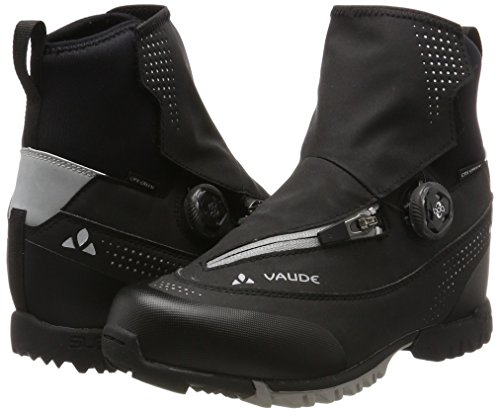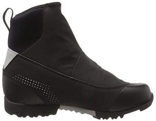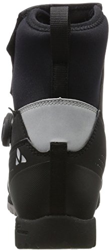 Mit dem wärmenden und wasserdichten MTB-Schuh geht Deine Bikesaison in die Ganzjahres-Verlängerung. Der halbhoch geschnittene Schuh schützt durch die wasserdichte Konstruktion mit Sympatex Membran vor Schmutz und Nässe; das PrimaLoft Eco Innenfutter sorgt für eine gute Isolation und hält die Füße bis über den Knöchel warm. Mit dem Boa-Schnellverschluss ist ein komfortables An- und Ausziehen gewährleistet und eine Nachjustierung auch mit Handschuhen schnell und einfach möglich. Über der Schnürung liegt eine Lasche mit wasserdichtem Reißverschluss zum Schutz vor Schmutz und Spritzwasser. Der breite Klettverschluss am Knöchel sorgt für zusätzlichen Halt. Im Rückfuß-Bereich sind reflektierende Elemente angebracht; damit ist auch bei dämmerigen Bedingungen eine verbesserte Sichtbarkeit gewährleistet. Die griffige Profilsohle ist kompatibel mit Klickpedalen und bietet einen hervorragenden Grip und Laufkomfort – auch bei winterlichen Bedingungen. Oberflächenbeschichtung: ja Einsatzzweck: MTB Größeninformation: Größe fällt normal aus Saison: Herbst/Winter Passform: normal geschnitten Details: – Kompatibel mit Klick-Pedalen – Click-Modul an Außensohle fixierbar – Schnürabdeckung mit stabilisierender Wirkung – Klettverschluß – Reflektierender Reißverschluss – Abriebfeste Zehen- und Fersenkappe Lieferumfang: 1 Paar PFC-frei Gewicht Gewicht pro Paar: 518 g Material Schuh Typ Laufsohle: mittel / weich Laufsohle: Gummiaußensohle mit Nylon Shank Membran: Ceplex Membran Eigenschaften: Thermo Obermaterial: Polyurethan Innenfutter: Polyester Ausstattung Schuh Typ Verschlusssystem: Drehverschluss Besonderheiten: Anziehhilfe Sohle: Anti-Rutsch-Sohle Fußbett/Innensohle: herausnehmbare Einlegesohle Verschlusssystem: Boa L6 Verschlusssystem Pedalsysteme Radschuhtyp: für Klickpedale Mountain Cleatsmontage: für 2-loch Cleats