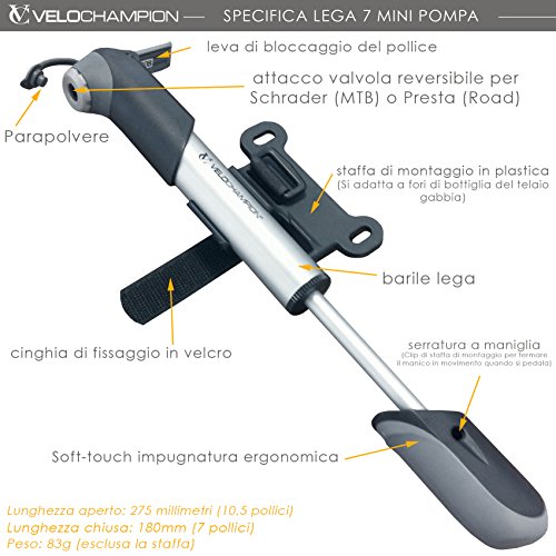 VeloChampion Alloy 7 Mini-Fahrradpumpe aus Aluminium, Silber/Schwarz – Mini Bike Pump
