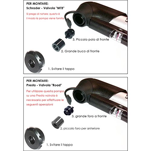 Die VeloChampion Alloy 7 Minipumpe von Maxgear Ltd bietet die Qualitat und Verarbeitung eines normalerweise doppelt so teuren Produktes. Aufgrund ihres qualitativ hochwertigen Aluminiumkšrpers und -rohrs erzielt sie bei ihrer kleinen Grš§e von nur 17,8 cm (7 Zoll) immer noch eine Pumpenleistung von bis zu 7 bar / 100 psi. Mit Dual-Density-Griff und Anti-Rutsch-Oberflache. Ideal fur Rennradfahrer und Mountainbiker. Das Rohr besteht aus Aluminium und ist somit leicht und robust. Klein genug zum Verstauen in einer Ruckentasche oder zur Befestigung am Rahmen. Die Alloy 7 passt auch in die VeloChampion Satteltasche zusammen mit VeloChampion Radheber, Multitool und Schlauch! Sie kšnnen als Ventil einfach Schrader-(Mountainbike)- oder Presta-(Rennrad)-Ventile wahlen. BITTE BEACHTEN SIE: Die Pumpe wird passend fur die grš§eren MTB-Ventile ausgeliefert. Bezuglich des Wechsels auf Stra§enrader lesen Sie bitte die Anweisungen. Bitte beachten Sie zur Orientierung auch unsere Produktbilder. Eine vielseitige Fahrradpumpe und ein Verkaufsschlager. Eine tolle Aluminium-Fahrradpumpe zu einem tollen Preis-/Leistungsverhaltnis! Pumpe eignet sich zum Aufpumpen jedes Produktes mit Presta- oder Schrader-Ventilen. Z. B. Rennrader Mountain Bikes BMXs Cyclocross-Rader Hybrid-Rader Kinderwagen/Buggies Wird auch vom „Champion System, Club Roost, Maxgear Pro Cycling Team“ verwendet
