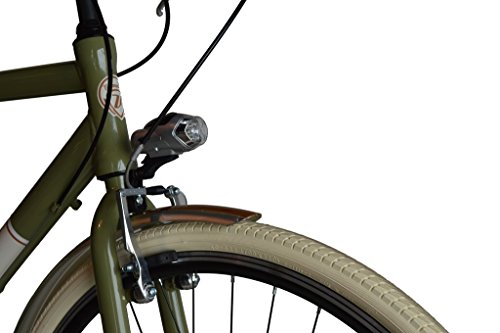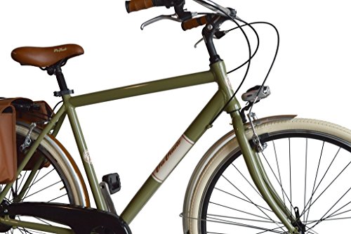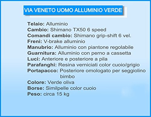Rahmen Aluminium, Gandshaltung Shimano TX50 6 speed, Shalthebel Shimano grip shift 6 speed, Bremse V brake aluminium, Lenkstange aluminium adjustable, Kettenradgarnitur aluminium, licht vorder und hintere batteriebetrieben, Hintere gepacktrager zugelassen fur Kindersitz, Tasche setlich braun setlich leder, Gewicht ca. 15 kg, Rad 28″ (700×35)